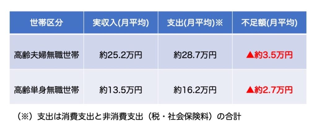 参照:LIFULL HOME’S PRESS「【無職世帯】65歳以上の夫婦、ひと月の生活費はいくら?《みんなの年金月額》シニア世代の”ふつう”ってどれくらい?一覧で紹介」
